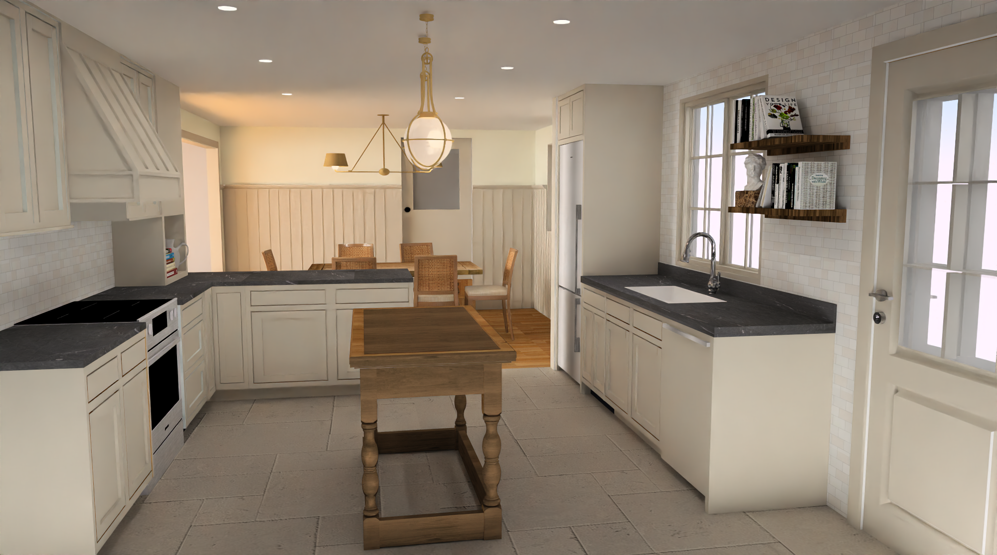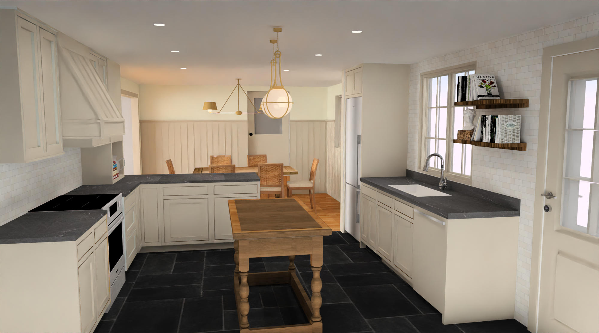 Dylan and I have worked together to re-envision our kitchen at home. Even for designers, its sometimes hard to look past the current condition and layout- living in the home for nearly two years has helped us pin down the pitfalls of the current layout and function. We’ve landed on a solution that allows more natural light into the space, and optimal circulation throughout our main spaces.